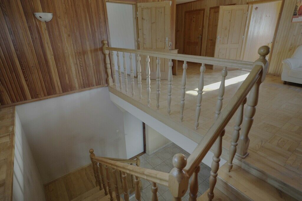 Dom wybudowany został w latach 80’ w stylu góralskim. Budynek jest