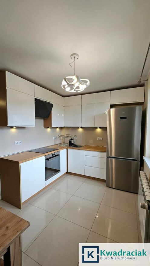 Kuchnia: stanowi oddzielne, duże pomieszczenie z oknem, w pełni wyposażona (okap, lodówka, płyta indukcyjna, piekarnik)