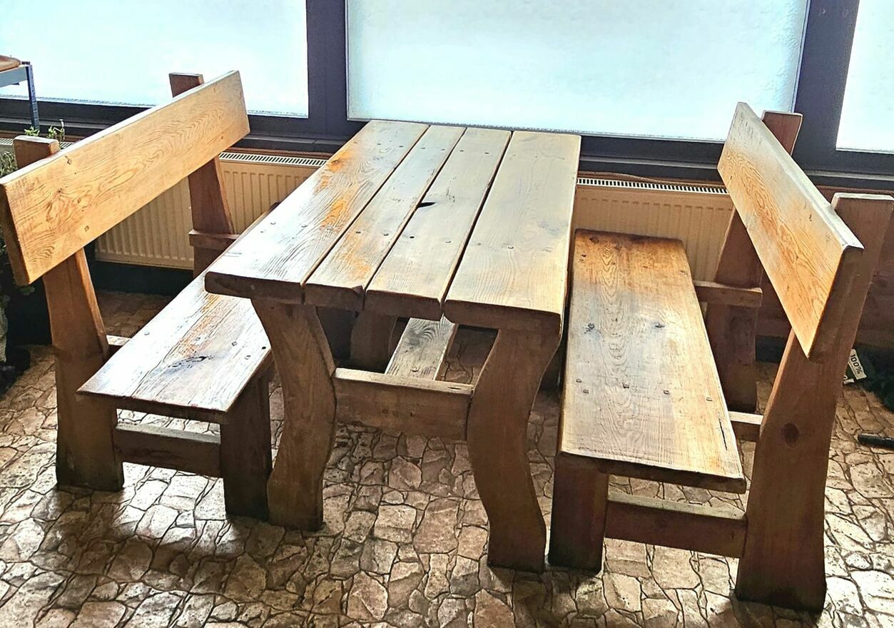 W ofercie stoły, ławki i krzesła drewniane.Używane w restauracji, w budynku. Nie były używane na zewnątrz. Drewno zdrowe- jedynie można wyczyścić i na nowo polakierować. W wybranym przez siebie kolorze.